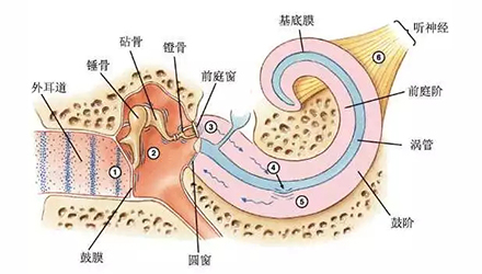 <span style="font-size:16px;"> 人體各器官功能取決于其生理結構,高頻陡降性聽力損失最為常見主要與耳部各個解剖部位有關。</span></p><p><span style="font-size:16px;"> 1、外耳的漏斗狀結構和彎曲“S”型耳道,此結構使得外界的聲學物理發生了變化。</span></p><p style="text-align: center;"><span style="font-size:16px;"><img src="/upfiles/201809030156391756.jpg" alt="" /><br /></span></p><p><span style="font-size:16px;"> 如上圖所示,人類耳廓及耳道對不同頻率段的聲音增益變化可以看出:在頻率2kHz-4kHz范圍耳道對聲音增益最大。研究表明噪聲引起的聽力損失常常位于噪聲頻率之上的一倍頻率程處,工業噪聲位于低中頻范圍內相對恒定,外耳道自然共振峰為2kHz-4kHz,故最容易導致4kHz-6kHz頻率范圍內聽力損失。這也就是為什么噪聲性耳聾起初聽力損失常常從4KHz左右開始,逐漸損害影響至更好頻率。</span></p><p><span style="font-size:16px;"> 2、耳蝸螺旋狀結構</span></p><center><span style="font-size:16px;"><img alt="" src="/upfiles/201809030156464845.jpg" width="440" height="250" /></span></center><p></p><p><span style="font-size:16px;"> 聲音從外耳道經聽骨鏈傳至內耳前庭窗,懸浮在耳蝸內的基底膜剪切運動引起其上的毛細胞電位變化,傳至大腦皮層感受聲音。</span></p><p><span style="font-size:16px;"> 耳蝸結構類似蝸牛呈螺旋結構,約2.5圈-2.75圈。聲波在基底膜上的傳播方式,是按物理學中的行波原理進行的,亦即行波學說(travellingwavetheory)。基底膜的最大振幅部位與聲波的頻率有關,亦即每一種頻率的聲波在基底膜上不同位置有一相應的最大振幅部位:高頻聲引起的最大振幅部位在蝸底靠近前庭窗處,低頻最大振幅靠近蝸頂,中頻在中間部分發生共振。由此可知,聲音從高頻到低頻的傳播途徑均需底周基底膜的振動,即高頻段的基底膜相對容易疲勞。同時耳蝸底周基底膜毛細胞含有比頂端毛細胞更低的抗氧化酶,故氨基糖苷類抗生素(慶大霉素、卡那霉素、鏈霉素等)耳毒性藥物出現的聽力損失都為陡降型聽力曲線。</span></p><p><span style="font-size:16px;"> 3、聽神經音頻分布</span></p><center><span style="font-size:16px;"><img alt="" src="/upfiles/201809030156516291.jpg" width="440" height="250" /></span></center><p></p><p><span style="font-size:16px;"> 聽神經分布與耳蝸基底膜螺旋結構一脈相承,感受低頻的神經位于中心,感受高頻的聽神經位于外周。外傷、缺血缺氧、皰疹病毒等理化環境的變化首先影響到高頻。</span></p><p><span style="font-size:16px;"> 更多詳情請登錄www.milwaukeetvs.com。</span></p>" />