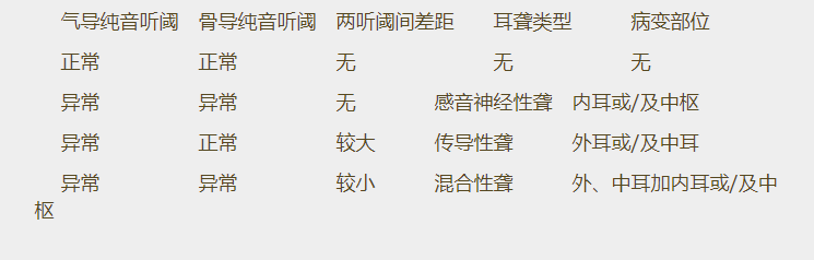 純音聽力檢查結(jié)果體現(xiàn)為純音聽力圖。</p><p> 正常情況下我們是通過兩條途徑來感受聲音信號的——氣導(dǎo)途徑和骨導(dǎo)途徑。前者我們非常熟悉,從外耳到中耳到內(nèi)耳到聽中樞;后者我們或許不太注意:從顱骨直接到內(nèi)耳到聽中樞。相應(yīng)地,純音聽力檢查也有兩種聲音剌激方式,氣導(dǎo)輸入和骨導(dǎo)輸入。前者我們天天使用,而后者則很少被我們使用。事實上,兩閾值曲線的異同正是我們判斷聽損病變部位的基礎(chǔ)(見下表)。了解患者病變部位對于獲得他們的信任以及確定助聽器電聲性能都有非同尋常的意義。因此,有條件的時候還是應(yīng)當重視骨導(dǎo)聽閾測試。</p><p style="text-align: center;"><img src="/upfiles/201906100237368907.png" alt="" /><br /></p><p> 更多詳情請登錄聽覺有道助聽器www.milwaukeetvs.com</p>" />